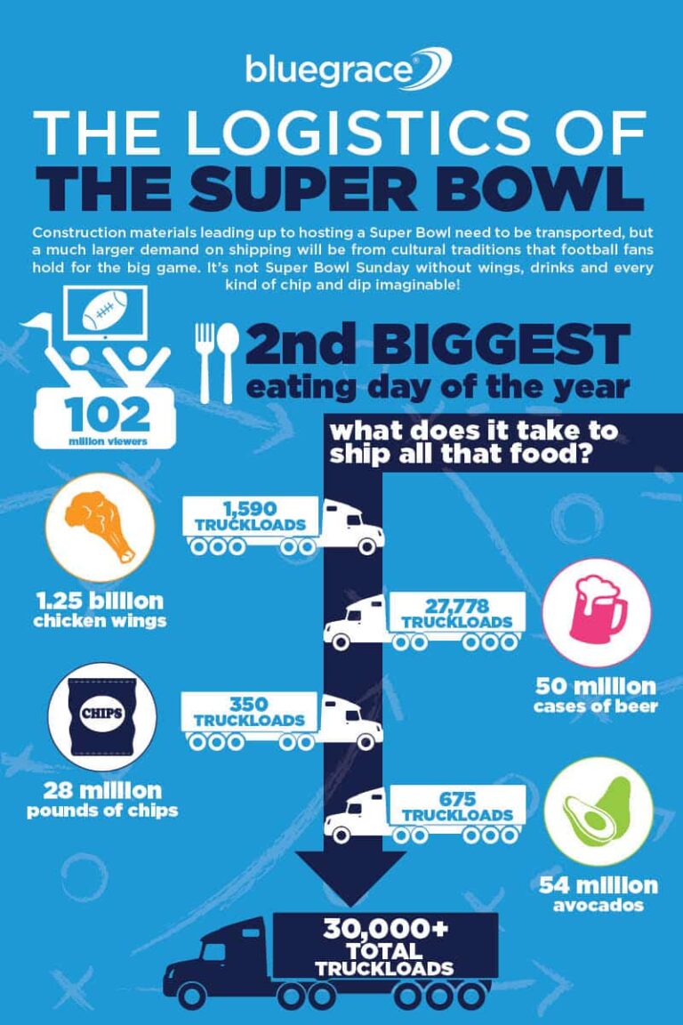 Since retailers are not likely to forget the bad taste in their mouths left by coming up short during a high sales annual event, it may benefit freighters to make the safe wager on last-mile delivery by booking LTL. Luckily, resources like visibility and real-time notifications mean that making choices for a reliable supply chain don’t have to feel like betting the farm. With transparency through technology from BlueGrace, you can take a move out of the NFL’s own Frank Supovitz’s handbook and be prepared for anything this Super Bowl Sunday.