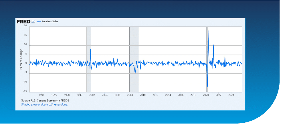 Retail sales trends relative to freight shipment trends provide early insight into inventory behavior. When retail spending outpaces freight shipments, inventories are being drawn down, setting the stage for restocking activity. Restocking represents the first meaningful demand catalyst for transportation markets.