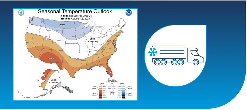 Q1 capacity risks are elevated as a La Niña winter threatens equipment positioning and availability. Colder temperatures increase the need for Protect From Freezing service while heavier precipitation raises the risk of equipment dislocation in northern markets. Shippers should plan for tighter capacity, longer repositioning times, and expanded reefer use on freeze-sensitive lanes where freeze risk is elevated.