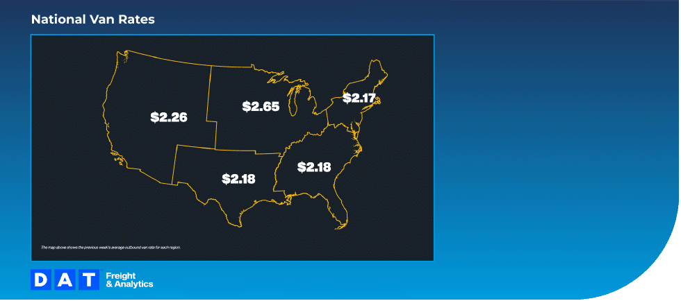 This reflects the average spot price carriers accept for marginal freight. Spot rates show real-time carrier behavior, making direction more important than the absolute number. Sustained increases signal rising leverage or costs, while brief spikes typically reflect disruption premiums.