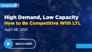 WebinarShow SubmenuResources The Logistics Blog® Newsroom Whitepaper Case Study Webinars Indexes Podcast Search Search BlueGrace Logistics - April 28, 2021 Tight Capacity in the LTL Market puts Pressure on Shippers The LTL freight market has been strong for the past several years but is currently at historic levels as domestic US freight volumes continues to surge across [...]