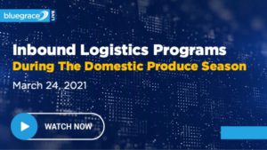 WebinarShow SubmenuResources The Logistics Blog® Newsroom Whitepaper Case Study Webinars Indexes Podcast Search Search BlueGrace Logistics - March 24, 2021 Inbound Logistics Programs For Retailers And Distributors During The Produce Season February marks the halfway point for winter across the country. While many of us are still recovering from an extraordinarily harsh round of winter storms, let's [...]